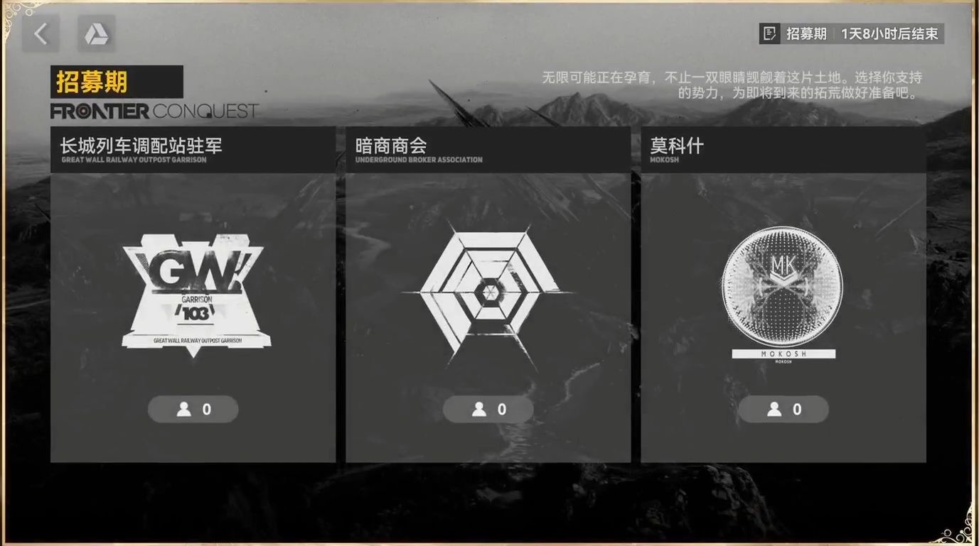 前々から予告されていたチームベースコンテンツです。3つの勢力(長城列車、闇ブローカー、モコシュ)のいずれかをチームで選択し、協力して勢力を勝利に導くというものです。恐らくシーズンごとの反復コンテンツになると思われます。