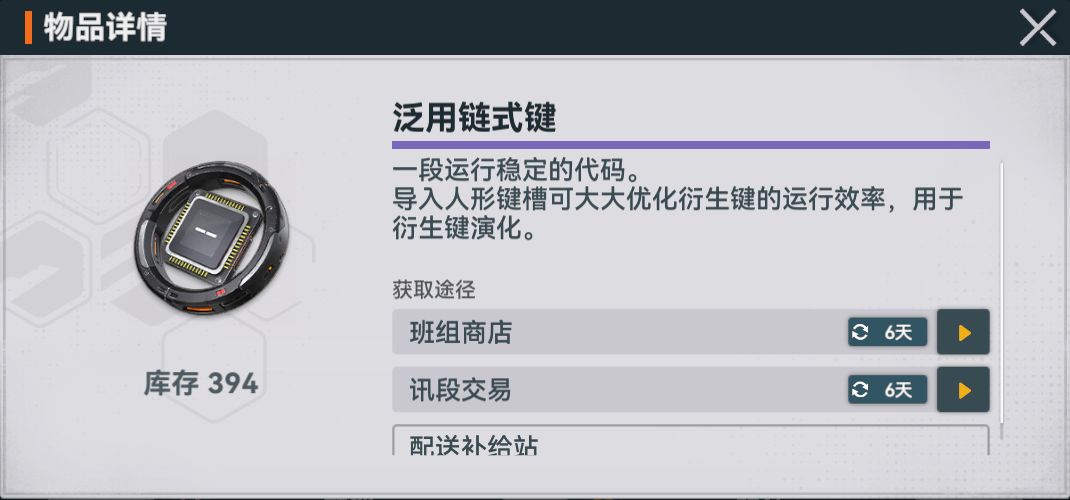 汎用チェーンキーの入手は現状限られており、ウィークリーやイベント報酬の配布か、標準派生キーの分解で入手できます。