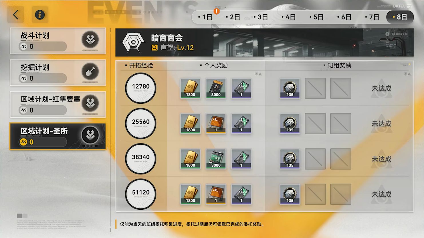 チーム任務はデイリーで更新され、報酬アイテムやチーム名声ポイントを獲得できます。