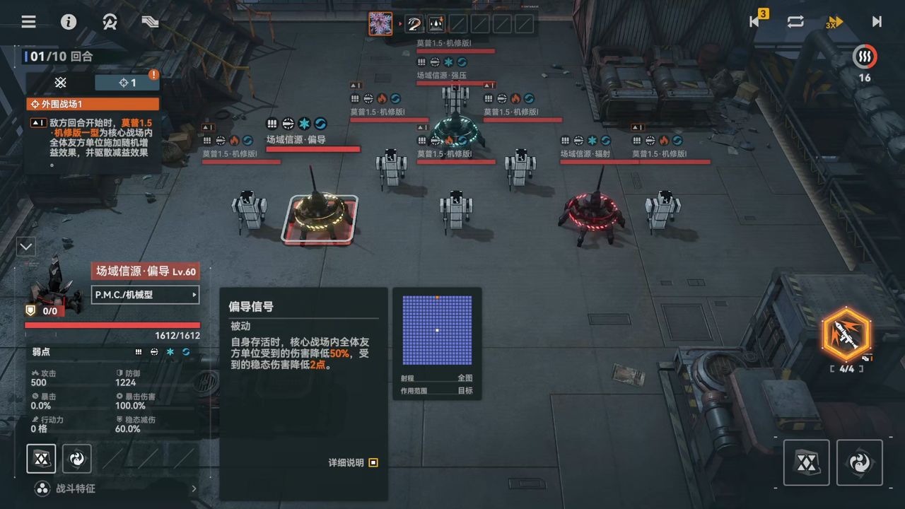 外周戦場は通常の戦場(中核戦場)とは別エリアになっており、配置された敵ユニットが周期的に中核戦場に対して支援攻撃を行ってきます。