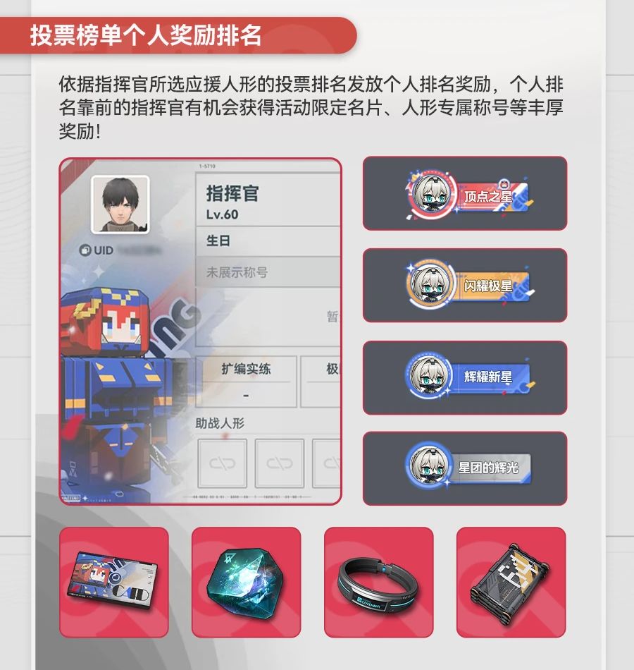 ペンライト投票数での指揮官ランキング報酬もあります。ランキング上位の指揮官には限定アイテムが支給されます。